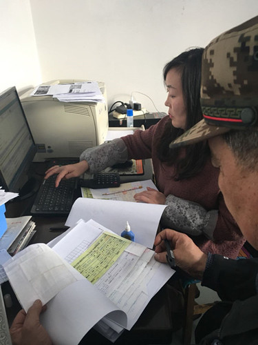1月12日,精河县茫丁乡城关村农经员邢燕,早上一上班就带上城关村2017年棉花票据到财政所进行票据的核对,核对内容依据“自治区棉花目标价格改革信息平台系统”上传的销售产量数据,核对包括姓名、亩数、公斤数、单产等多项内容。