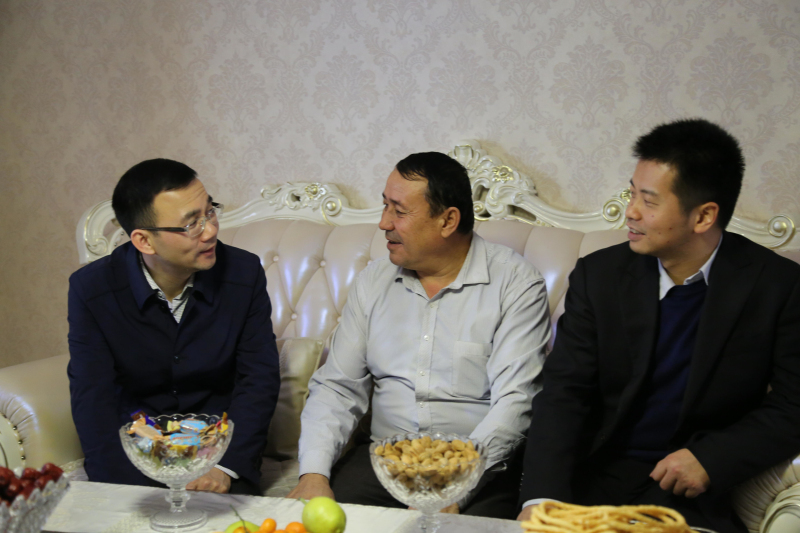 1月13日下午,受湖北省领导委托,湖北省援疆工作前方指挥部副总指挥金鹏在州发改委副主任王祖鹏、精河县委副书记肖茂林、茫丁乡党委书记杨鑫、乡人大主席尤峻的陪同下看望慰问精河县茫丁乡北地中村支部书记努尔买买提同志和巴西庄子村老干部尼扎木东·塔亚洪。
