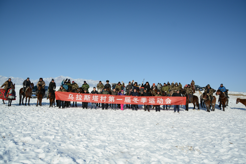 为深入学习宣传贯彻党的十九大精神,落实“坚定文化自信,推动社会主义文化繁荣兴盛”的要求,丰富群众性文化活动,凝聚起乌拉斯塔村各族农牧民拼搏进取、共创美好生活的磅礴力量,2018年1月7日-8日,温泉县哈日布呼镇乌拉斯塔村驻村工作队、村两委组织开展了“乌拉斯塔村第一届冬季运动会”。