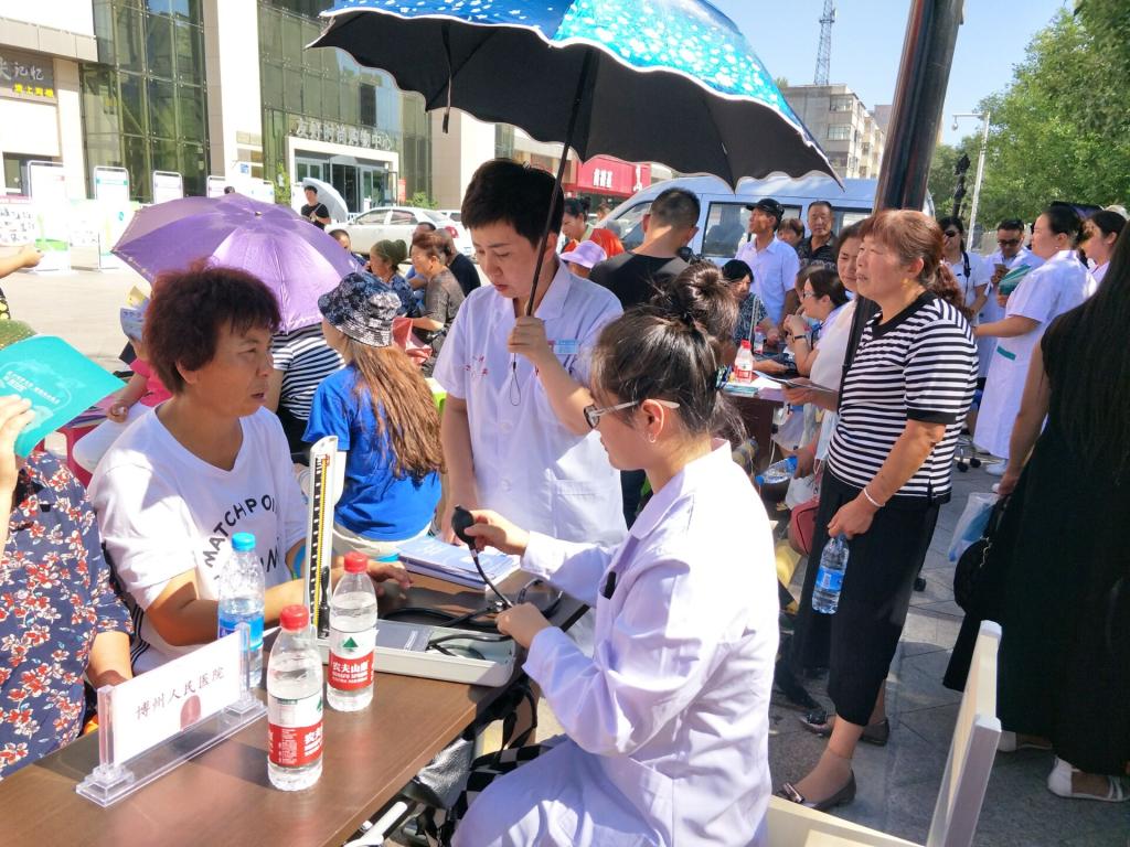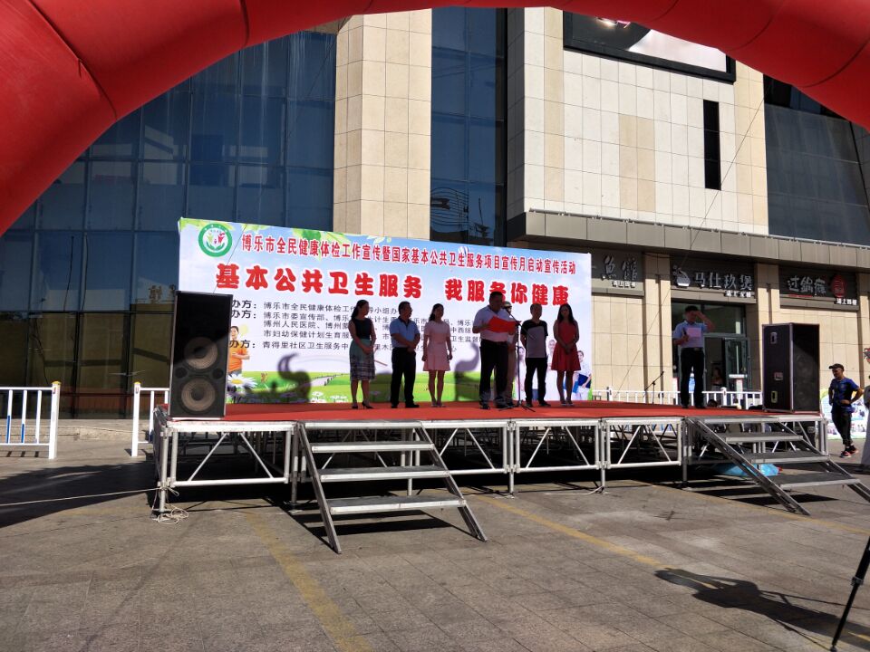 为动员广大城乡居民“积极参与公共卫生、免费享受健康服务”,大力营造“公共卫生人人参与”的浓厚氛围,形成健康生活、人民安居乐业的大好局面,7月26日上午11时,在博乐市友好商场正门前,博乐市顺利开展全民健康体检工作宣传暨国家基本公共卫生服务项目宣传月启动宣传活动,此次活动由博乐市全民健康体检领导小组办公室主办,由博乐市委宣传部、博乐市卫生计生委、博乐市公安局、博乐市各街道、州人民医院、州蒙医医院、 市人民医院(市中西结合医院)、市疾控中心、市妇幼保健计划生育服务中心、市维吾尔医医院、市卫生监督所等部门协办,由顾里木图社区卫生服务中心、青得里社区卫生服务中心承办。博乐市人民政府副市长哈利比亚提·斯拉木汗、市卫计委主任买买提力同志、克尔根卓街道副主任钱海及市直各医疗卫生单位主要领导到现场,并与城区5个街道100余名社区居民共同参与了此次宣传活动。